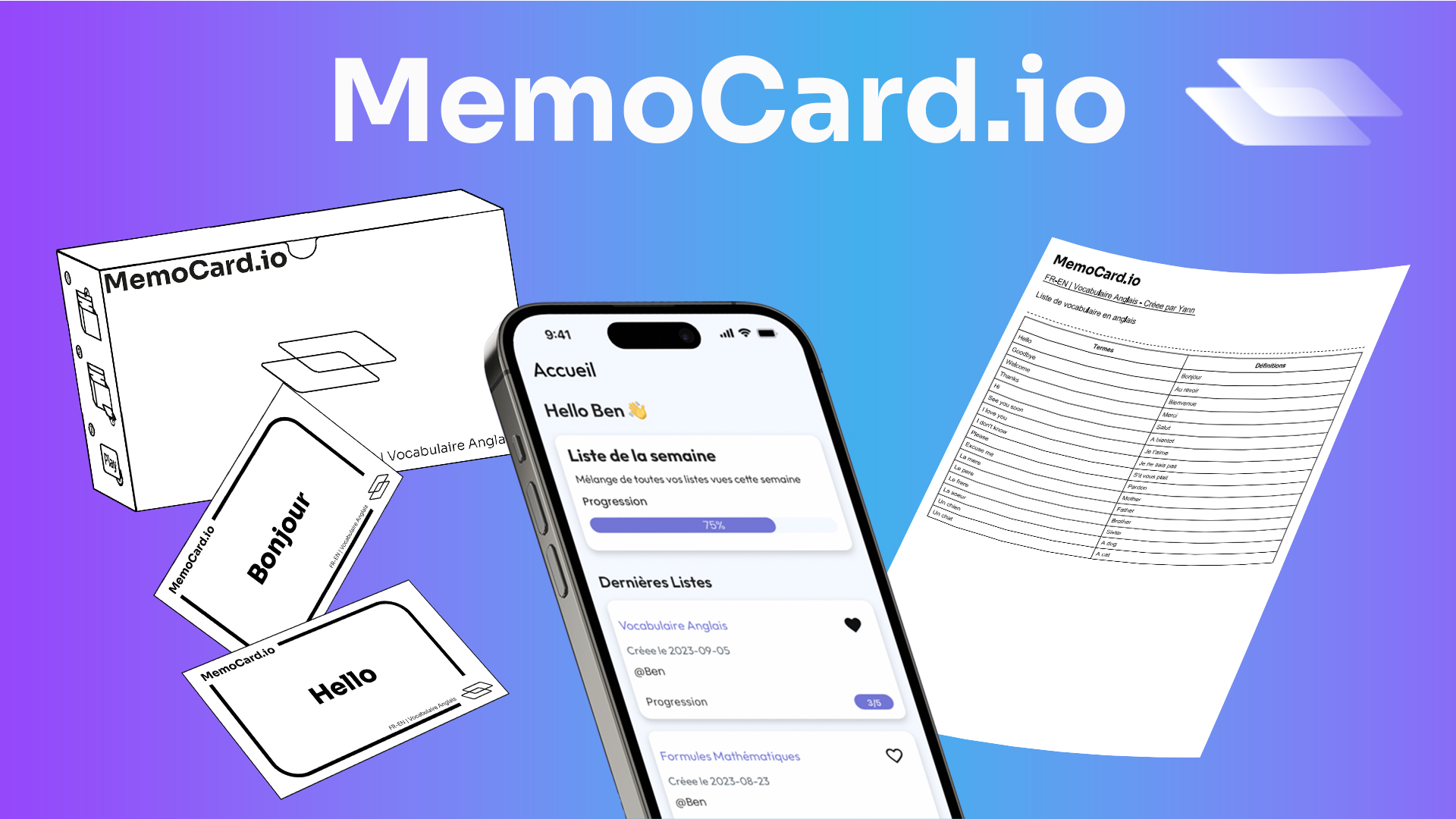 MemoCard.io est une application mobile de révision et de mémorisation basée sur des flashcards intelligentes, permettant de créer, organiser et réviser des contenus d’apprentissage sur différents sujets.